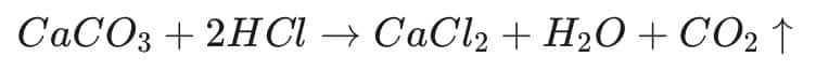 (Calcium Carbonate + Hydrochloric Acid → Calcium Chloride + Water + Carbon Dioxide)