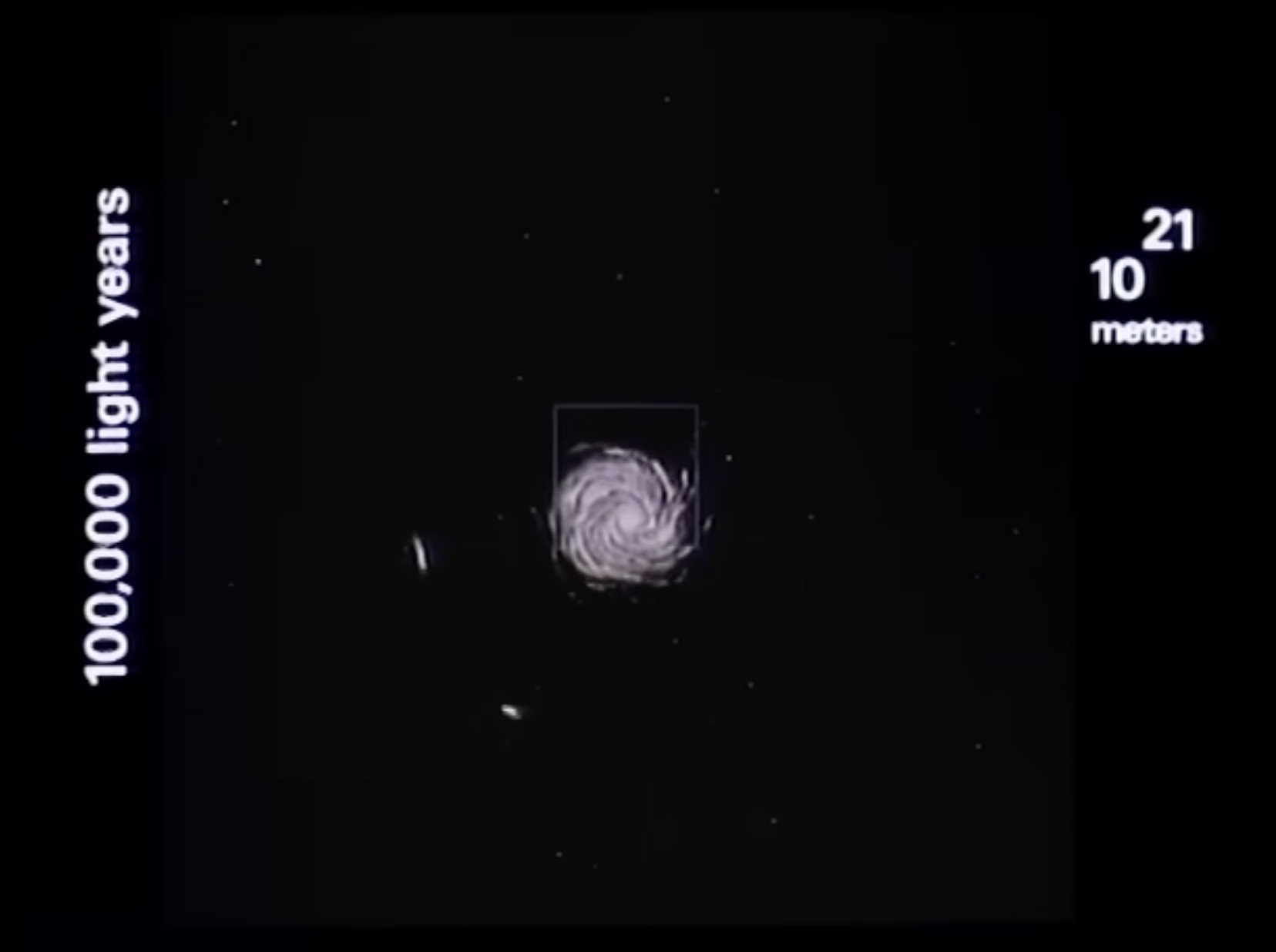 The sheer brilliance of this video lies in its ability to zoom out from a single point on Earth to 10 to the 24th power meters (the edge of the observable universe)—