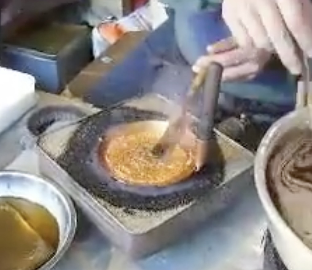 そんな試行錯誤の中、ネットで湯島天神のカルメ焼き屋さんの動画を見つけて、その鮮やかな手際に思わず見入ってしまいました。
