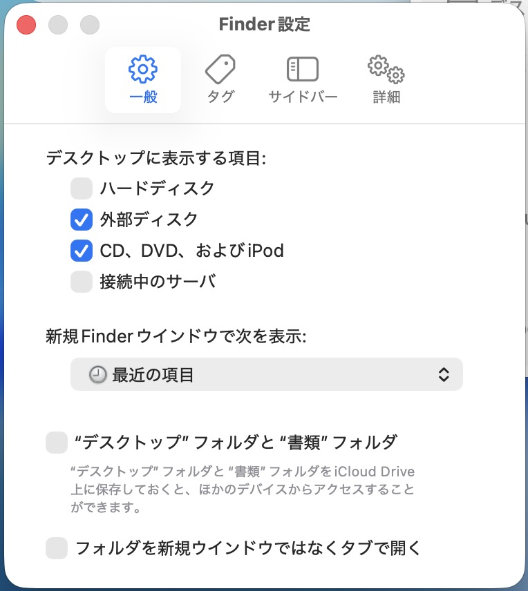 Finder→設定→フォルダを新規ウィンドウではなくタブで開く のチェックボックスをオフにする