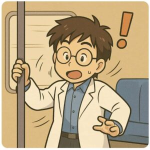 まず思い出してほしいのが、まっすぐ走る電車が急ブレーキをかけたときに、体がつんのめるように前に進む、あの「慣性力」です。これは、私たちの体が「動き続けたい」という性質(慣性)を持っているために、電車の中にいる人から見て、あたかも前方へ向かう力が働いたように感じる現象でした。