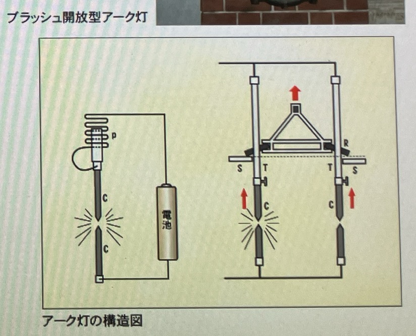 こちらは国立科学博物館で展示されていた、アーク放電を利用したアーク灯です。