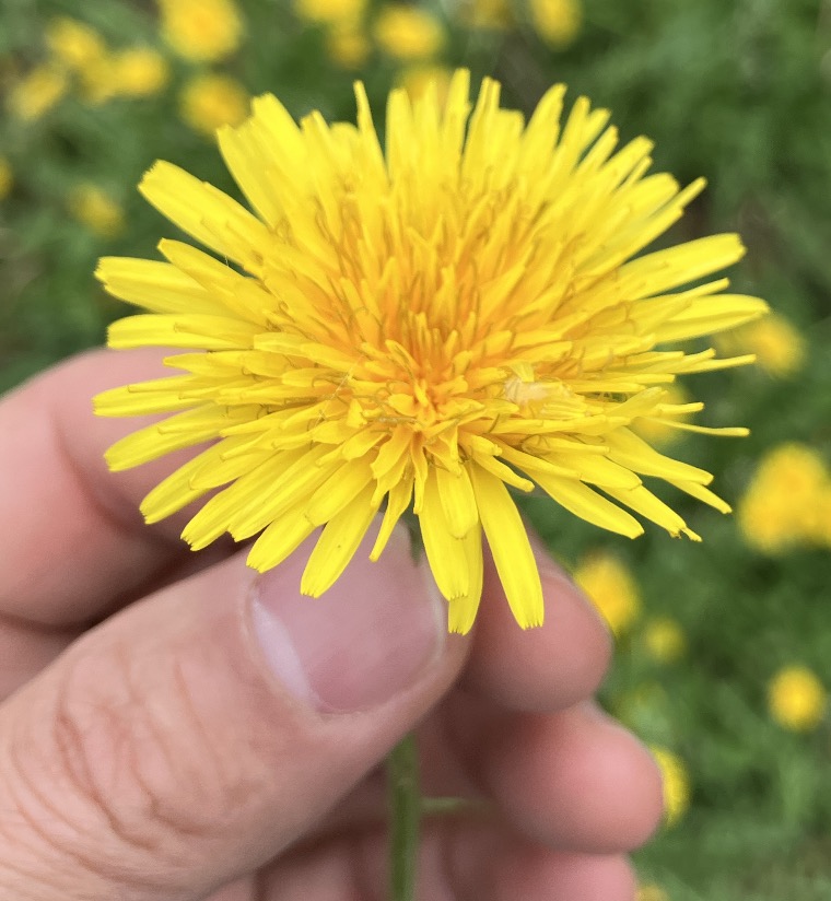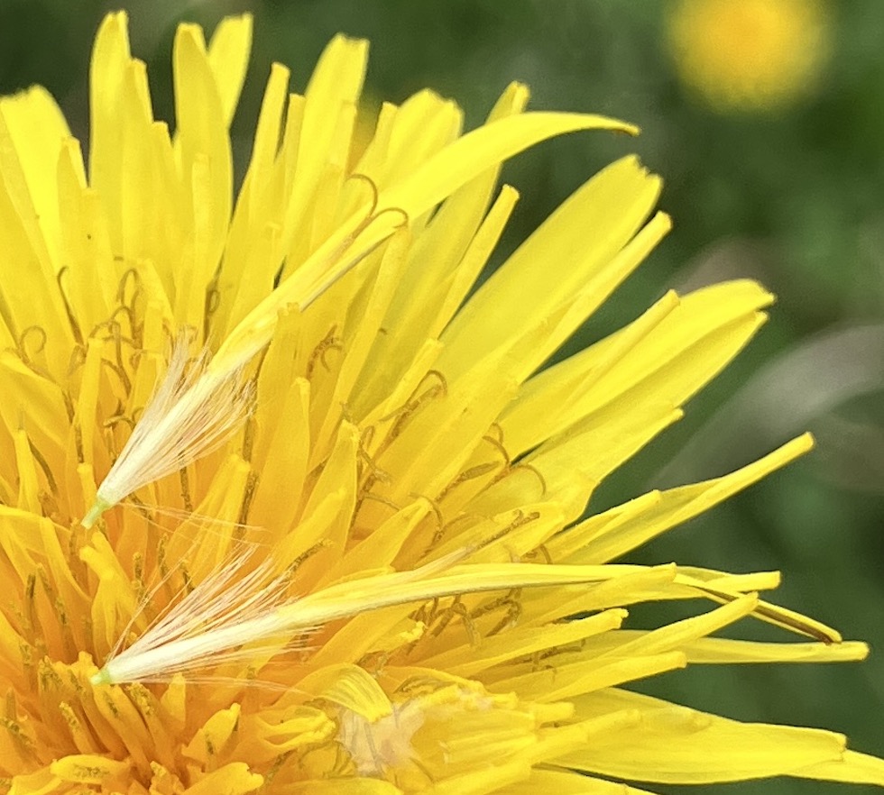 タンポポから花びらを引っ張ると、一つ一つに雄蕊があることがわかります。多数の花の集合体だということがわかりますね。
