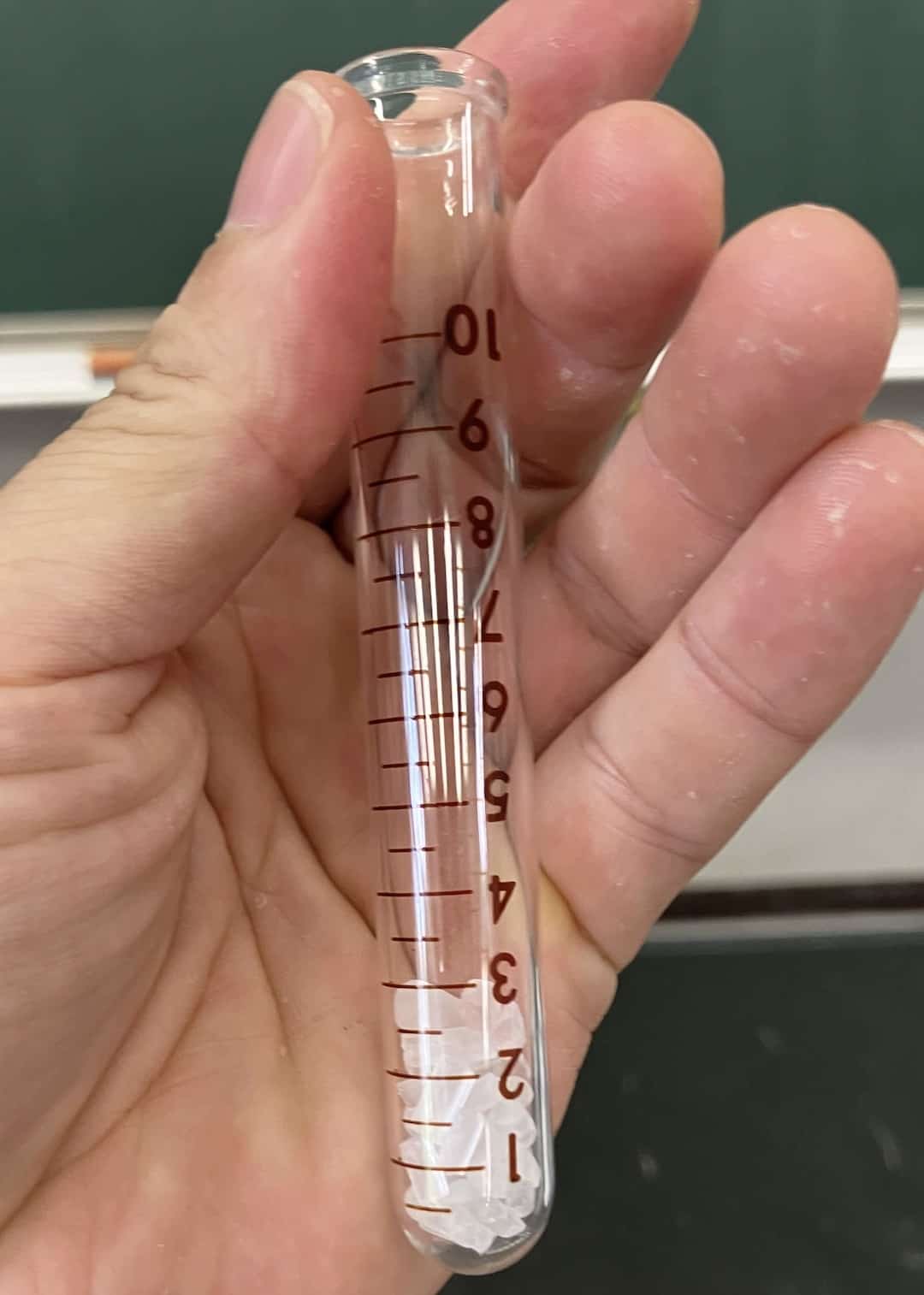 なお、この実験は実習生の藤田先生が苦労されて開発されたものです。結晶の実験は思ったよりもとっても難しいのが特徴です。