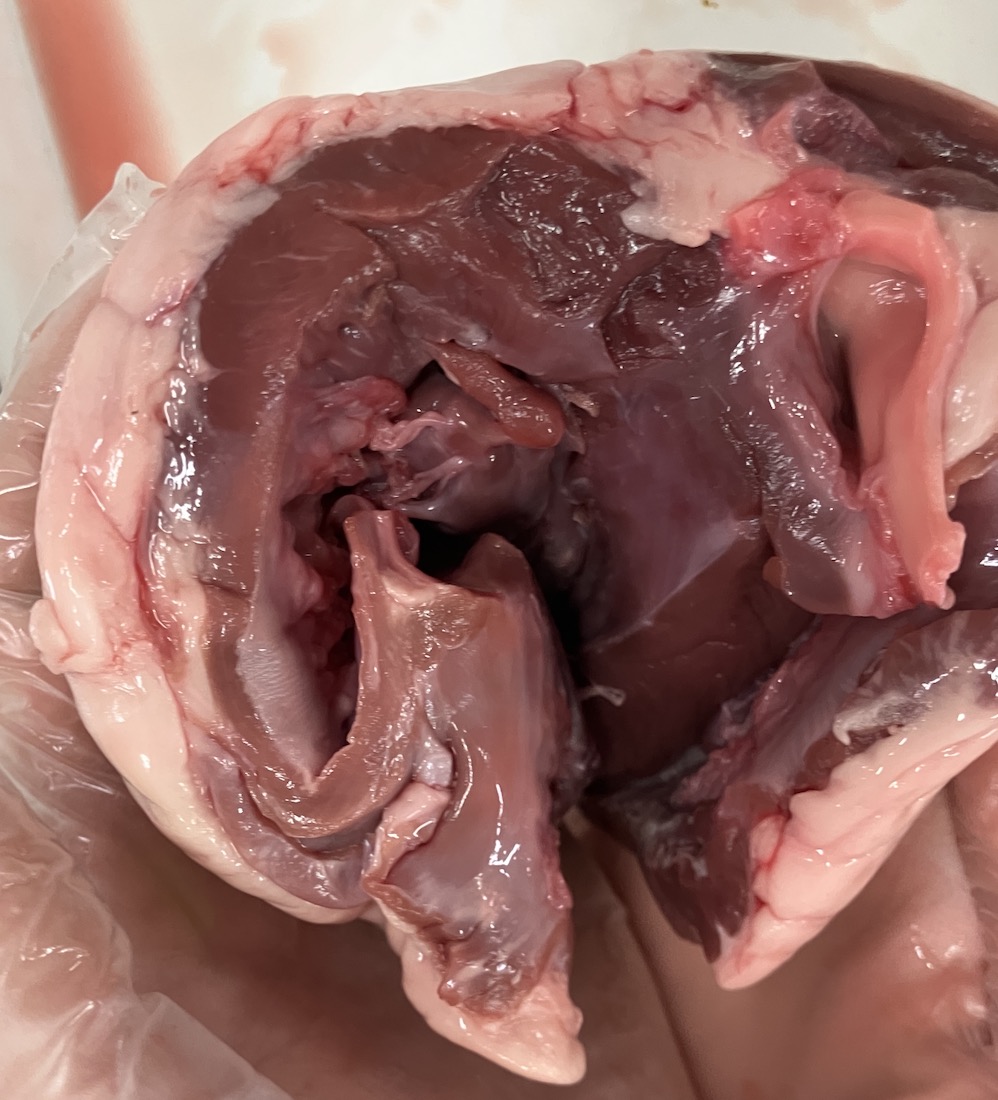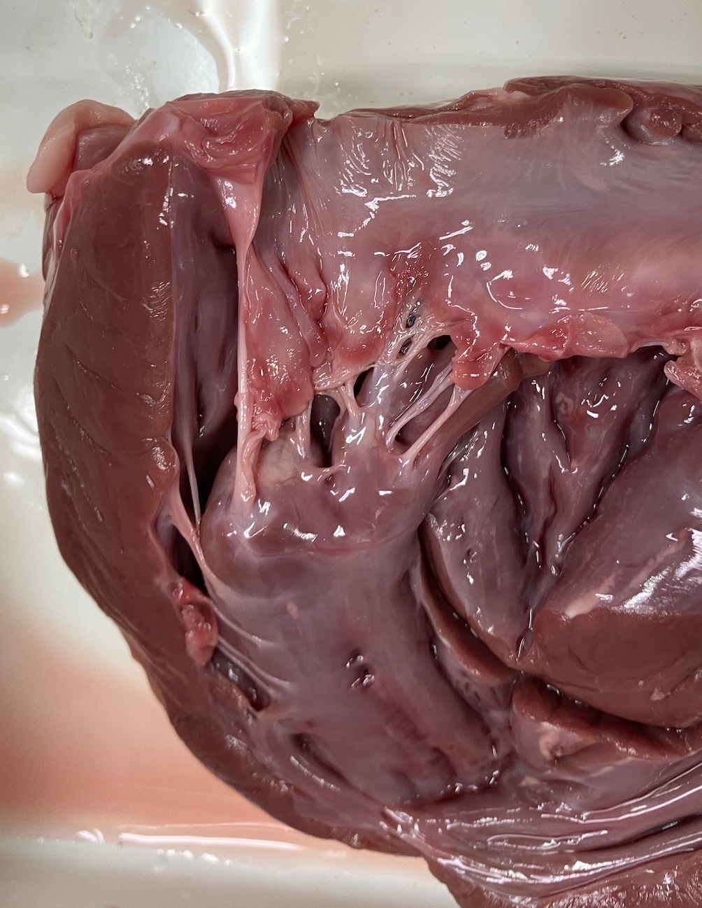 豚の心臓を上から見ると、ベンのようなものが見えます(写真だとちょっとくらいです)