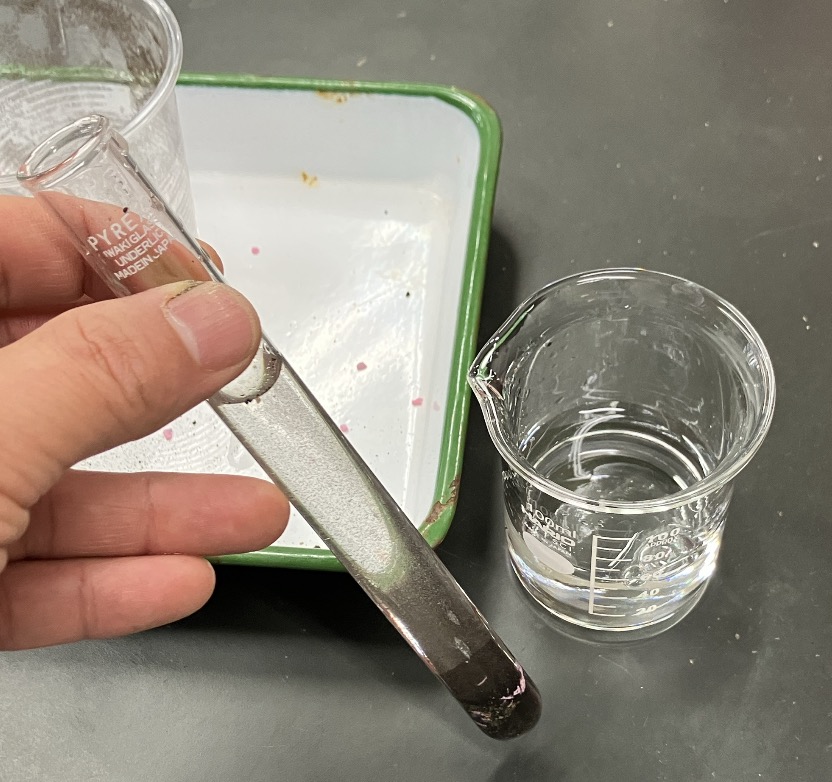③ ②の試験管の7~8分目くらいまで水を入れます。ビーカーで入れましょう。