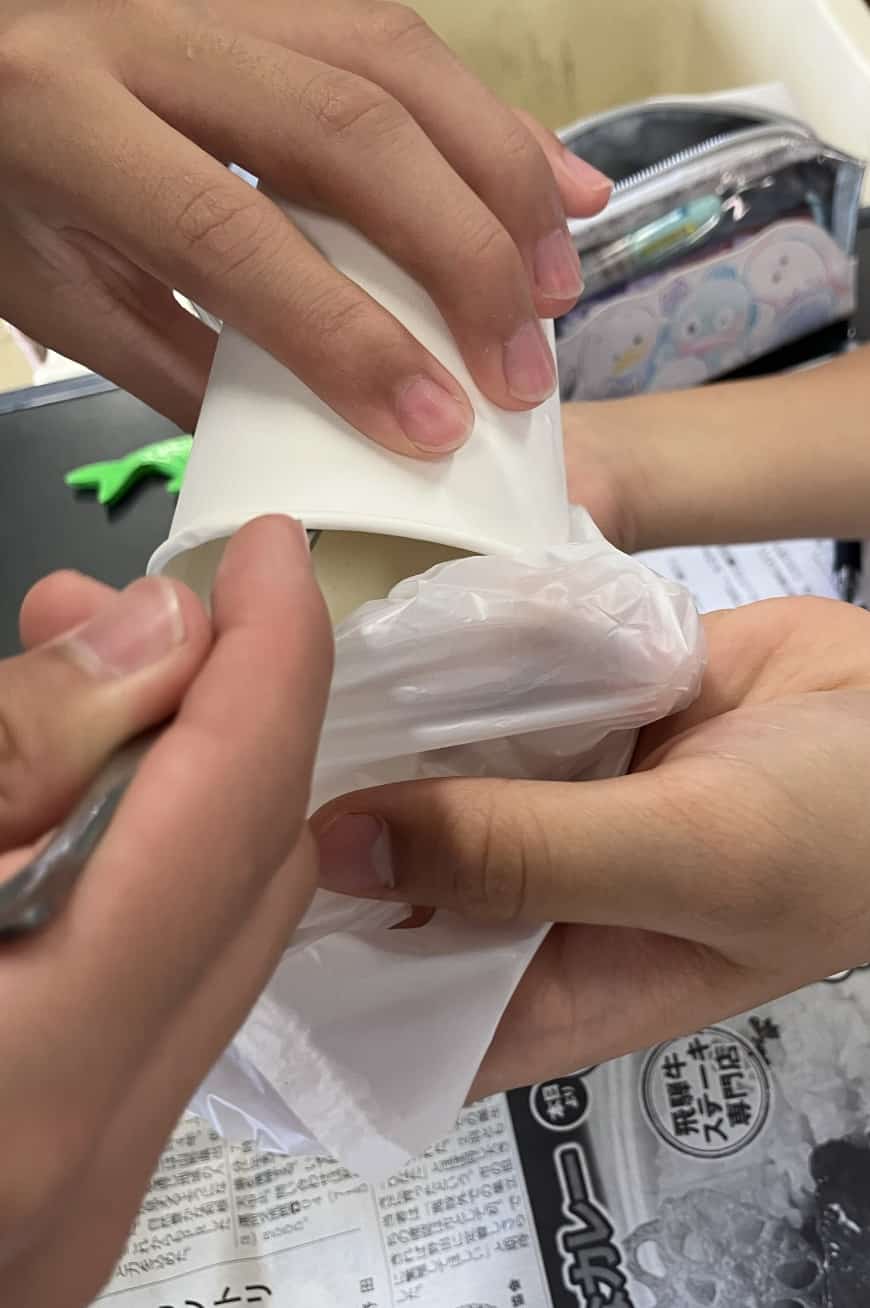噴火口を作る道具:ビニール袋、ハサミ