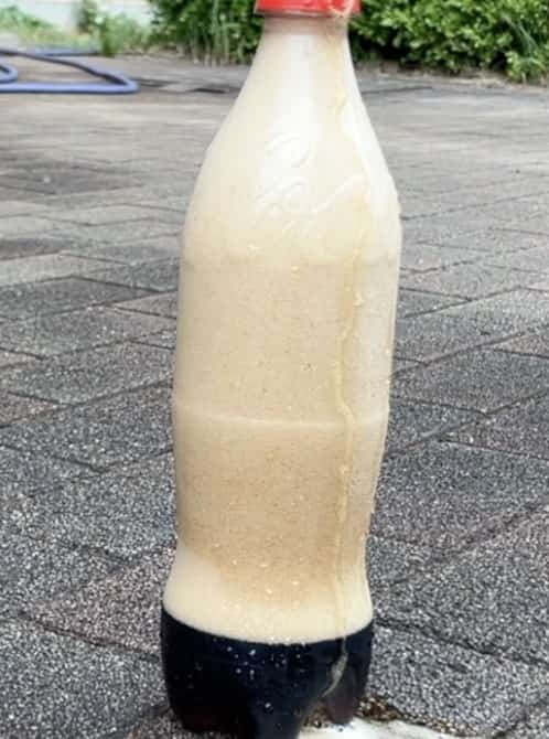みなさんがYoutuberの動画などでよく目にする「メントスコーラ」の実験に似ていますね。コーラには、「二酸化炭素(CO2)」という気体が、高い圧力をかけられて無理やり押し込まれています(液体に溶け込んでいる状態です)。