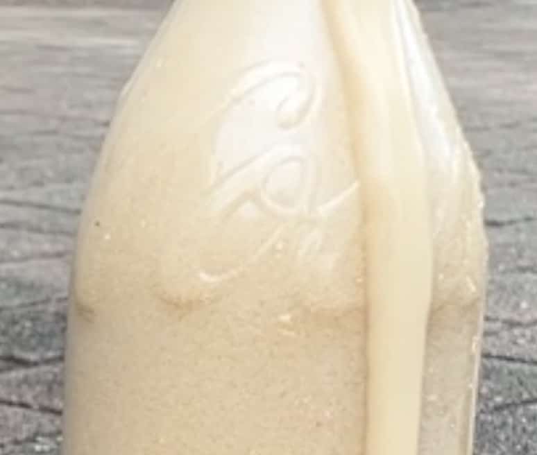 ② コーラをラベルの上あたりまで飲みます(または、捨てます)。ボトルの中に、空気の層(空間)を作ることが目的です。