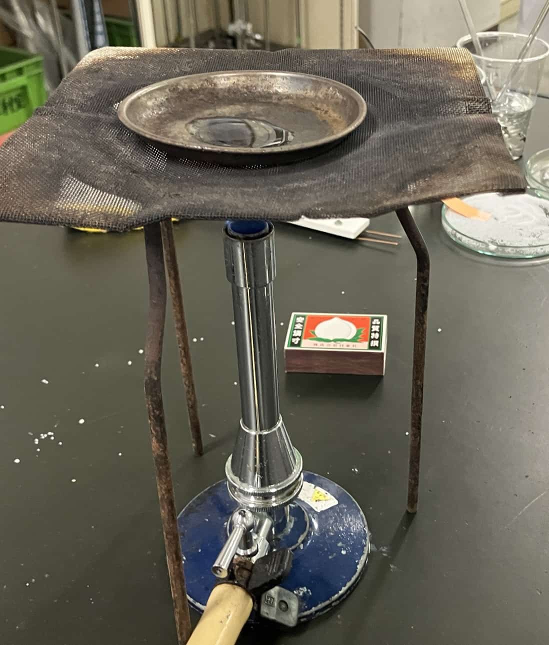 水に溶けたなら、もう一度水から出してみよう、という捜査です。液体を蒸発皿で熱し、水分を飛ばします。
