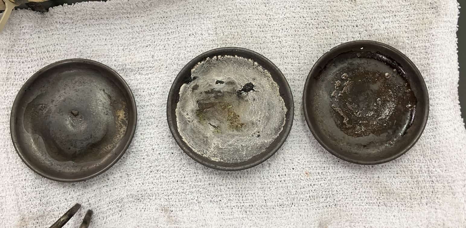 これは決定的な差が出ました! 黒く焦げているものと、まったく燃えず、白いままのものがあります。(塩は加熱すると、中に含まれる水分のせいで「パチパチ」と音を立てることがあります)