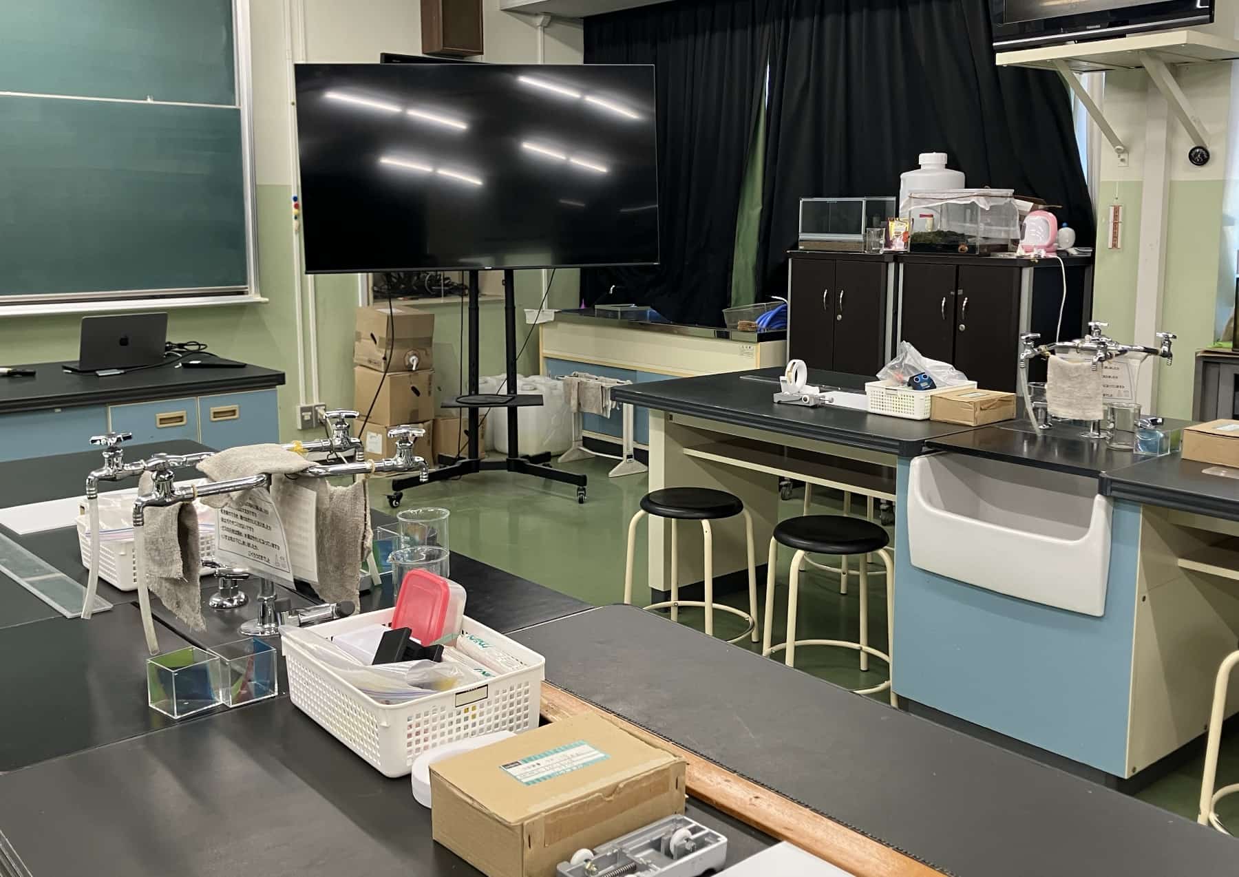 そして、こちらが附属中学校の理科室です。ものが綺麗に整理整頓されていて、素晴らしい環境です。ここでどんな「なぜ?」が生まれているのか、ワクワクします。