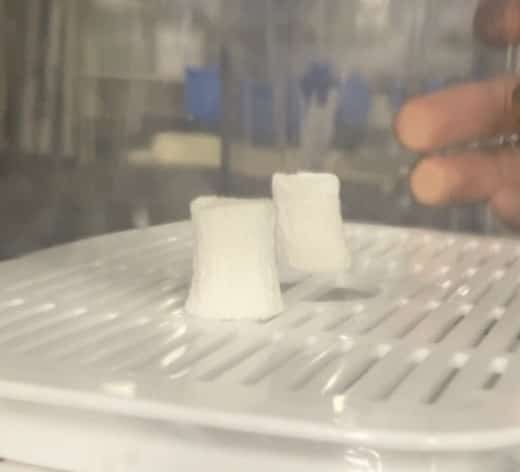 実験はとてもシンプルです。 減圧装置(中の空気を抜くことができる機械)にマシュマロを入れ、スイッチオン。