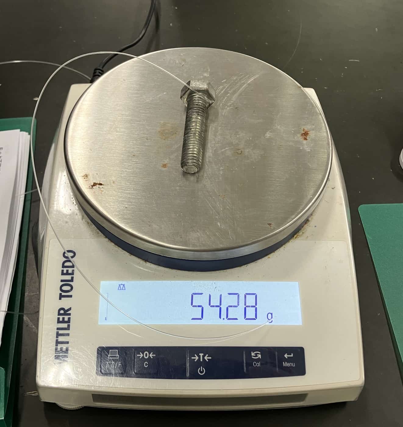 本校の授業では、正体不明の3つの金属(ボルト・バネ状の金属・円錐状の金属)を生徒たちに渡します。 この金属が何でできているのかを突き止める鍵、それが「密度」です。密度とは、物質1㎤あたりの質量のことで、物質ごとに決まった値を持っています。いわば、物質の指紋のようなものです。
