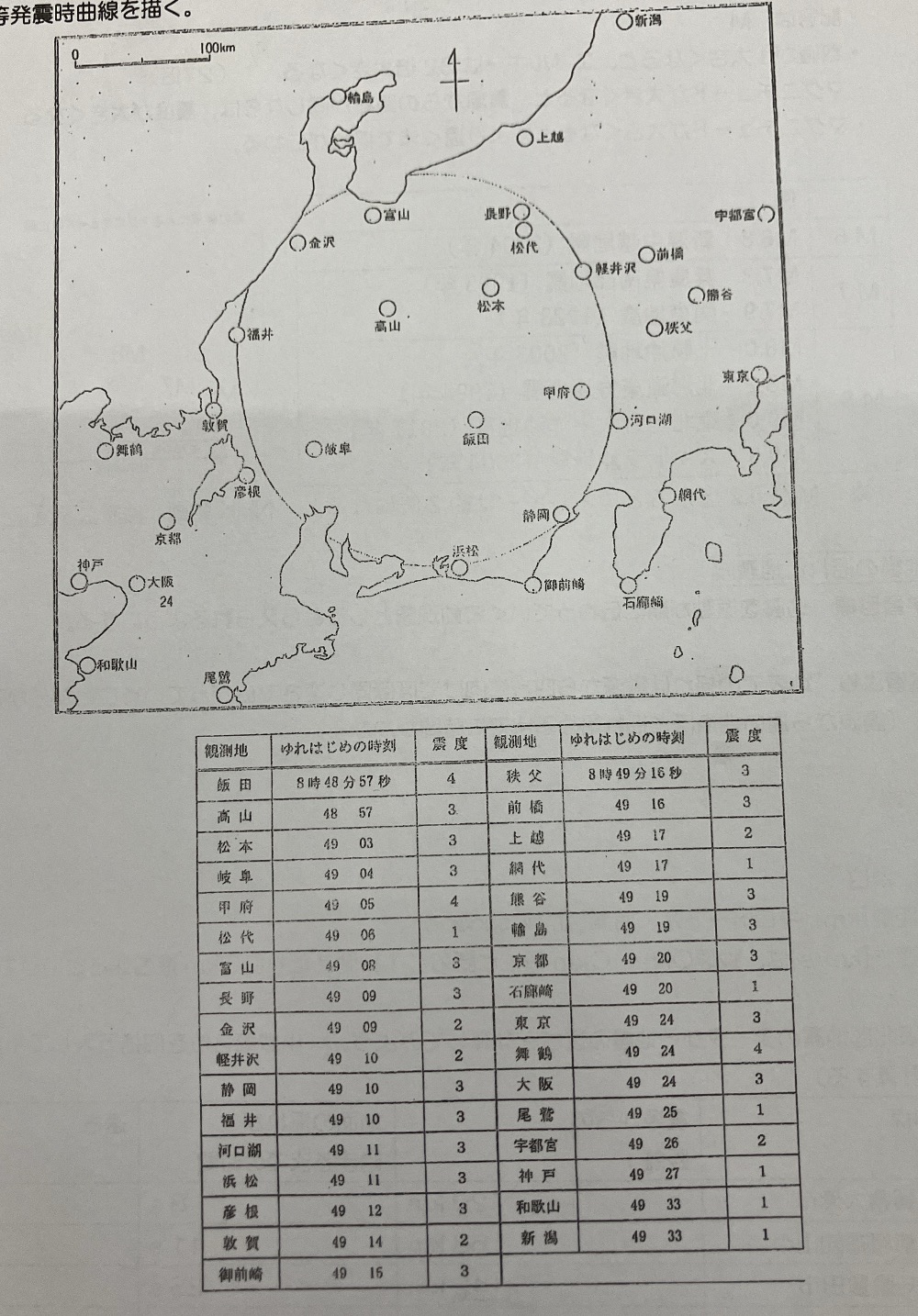 地震の「足跡」を追え!白地図に描く等発震時曲線でわかる地震の秘密(地震の分析白地図ワーク)
