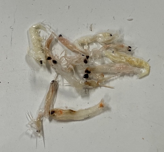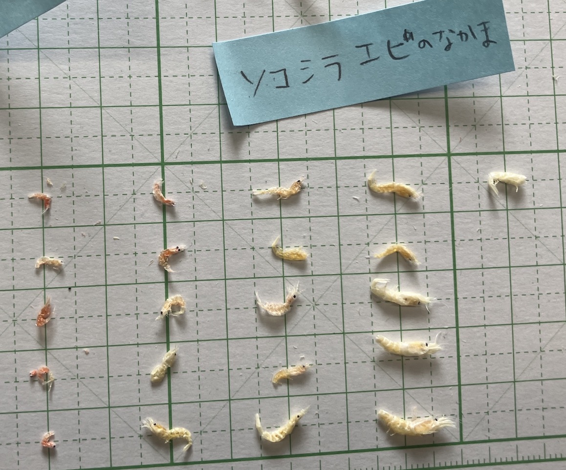 深海エビの一種、ソコシラエビの仲間も見つかりました。普段は見ることのない深海の生き物まで混ざっているなんて驚きです。