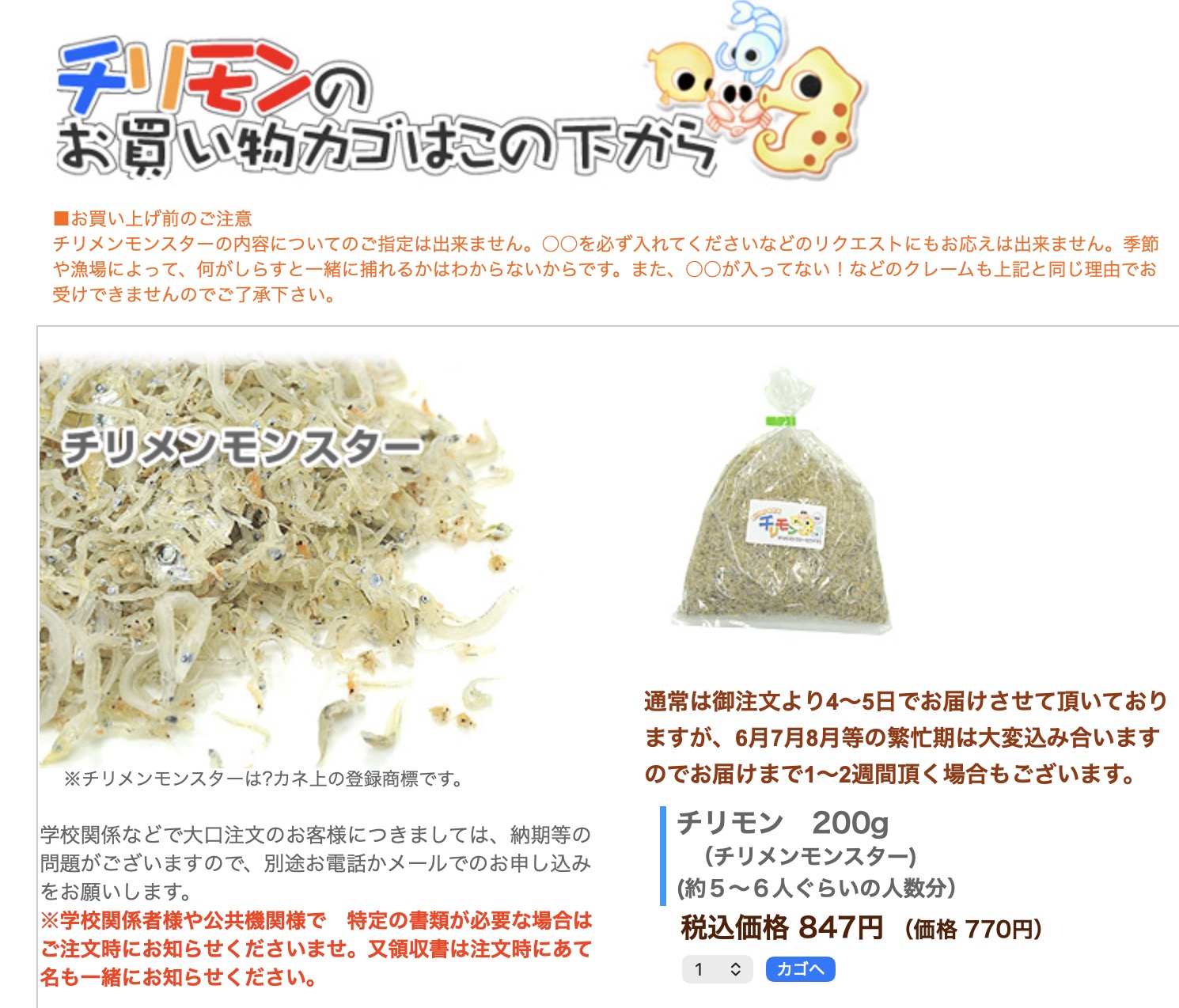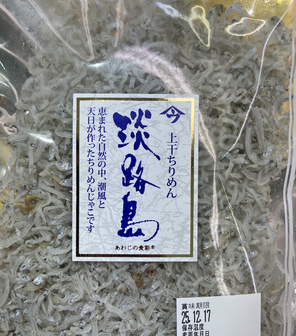 こちらは比較用のスーパーのもの。探せば入っているものもあります。上干ちりめん淡路島には入っていました。