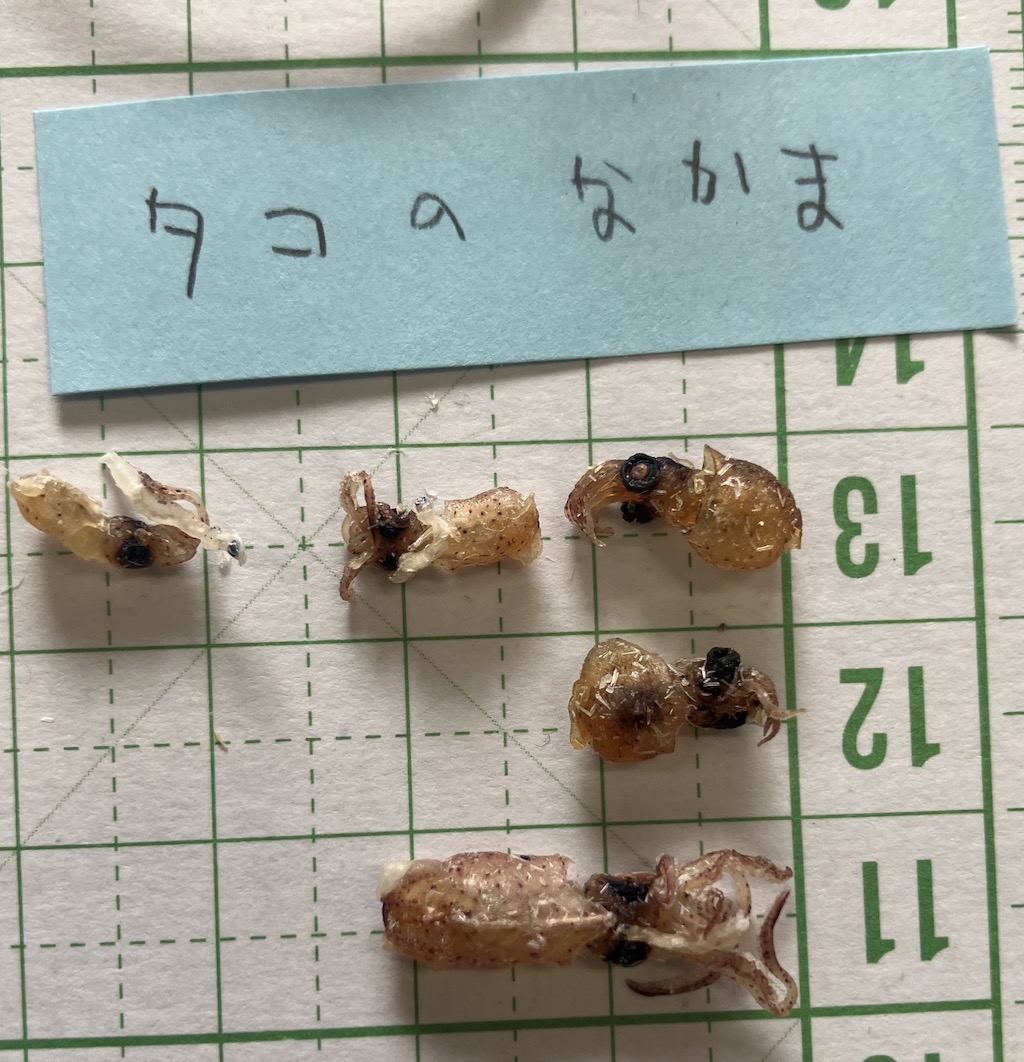 こちらはタコ、あるいはイカの赤ちゃんです。このサイズでもちゃんと吸盤や足の形をしているのが愛らしいですね。