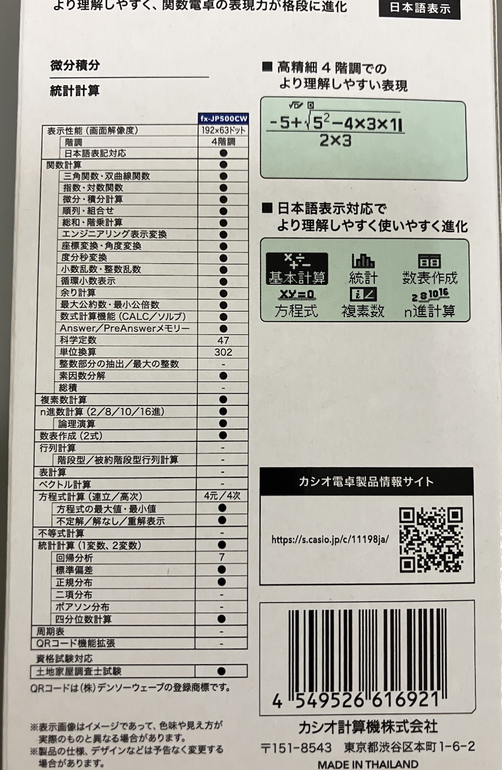 私が同じような関数電卓を初めて手にしたのは大学生の頃でしたが、当時は8000円ほどした記憶があります。それが今や、性能は格段にアップしているのに価格は半分以下。技術の進歩には本当に驚かされます。この電卓の素晴らしい点は、太陽電池を搭載していること。乾電池の残量を気にすることなく、光さえあればいつでも計算を始められる安心感があります。液晶画面はコンパクトですが、教科書に載っているような分数やルート(平方根)をそのままの形で表示できる「自然表示」に対応しているため、直感的に数式を理解することができます。