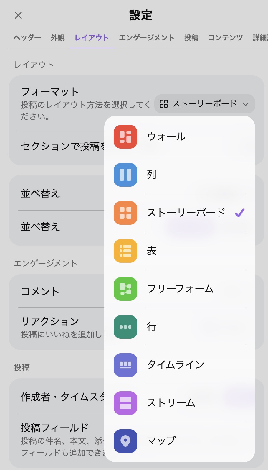初めて使う方が多い場合、真っ白なキャンバスに「自由にどうぞ」と言うと、逆に意見が書きにくくなることがあります。そんな時は、レイアウト設定で「列(棚)」を選んでみましょう。