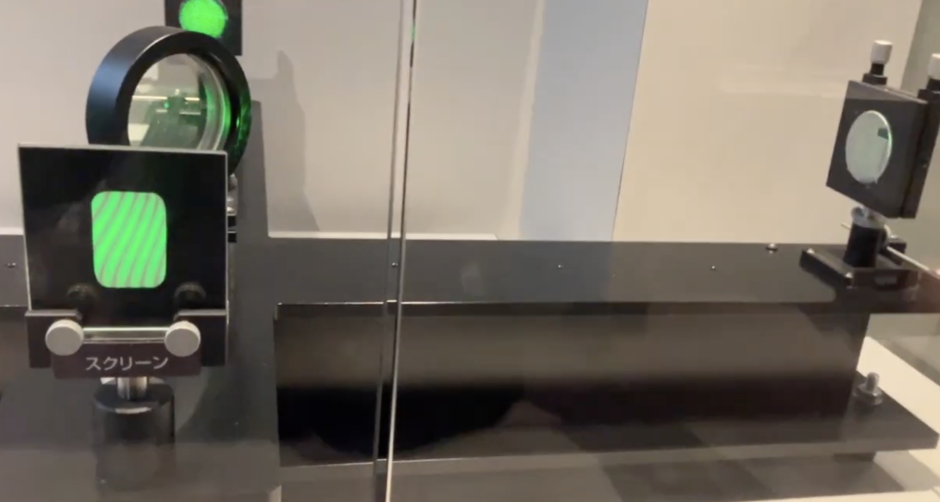 国立科学博物館に展示されているこの装置、実は自分の手で触ることができるんです!鏡を支える部分を指先でほんの少しだけ、わずかに歪ませるだけで、目の前の縞模様がスルスルと動いていきます。目には見えないほど微小な距離の変化を、光の縞が鮮やかに教えてくれる。