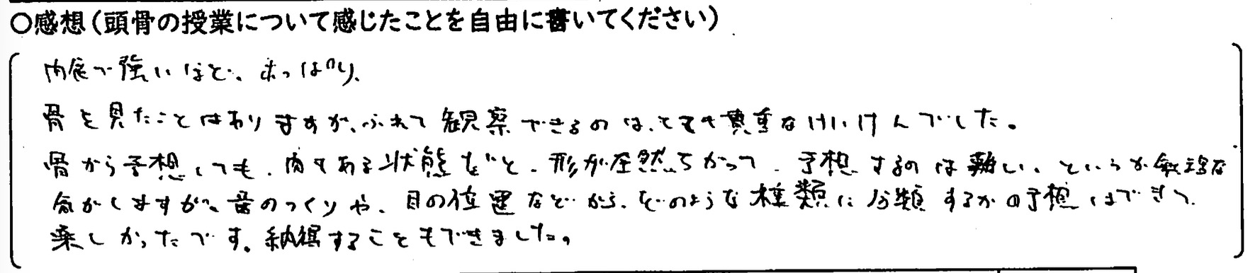今回は、交通事故などで不運にも命を落とした動物たちから、敬意を持って取り出された「本物の頭骨」を教材にした、特別な理科の授業の様子をお届けします。この骨は、奈良教育大学のY先生から送られてきた教材で、また授業の流れ自体もY先生が作られたものをやってみました。Y先生ありがとうございます。