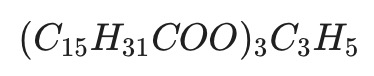 パルミチン酸などの脂肪酸は、新しい油(トリグリセリド(wiki))の中では、グリセリンという土台にガッチリ結合しています。この状態を化学式で見るとこうなります(パルミチン酸が3つ結合したトリパルミチンの例)。