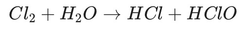 ここで疑問が。一見、塩素と水が混ざるだけでなぜ強い酸である「塩酸」が生まれるのか、不思議ですよね。実はここでも、塩素の「相手を酸化させて、自分は水素とくっつきたがる」という強烈な性質が働いています。塩素ガスが肺の粘膜などの水分に触れると、すぐに次のような反応が起こります。