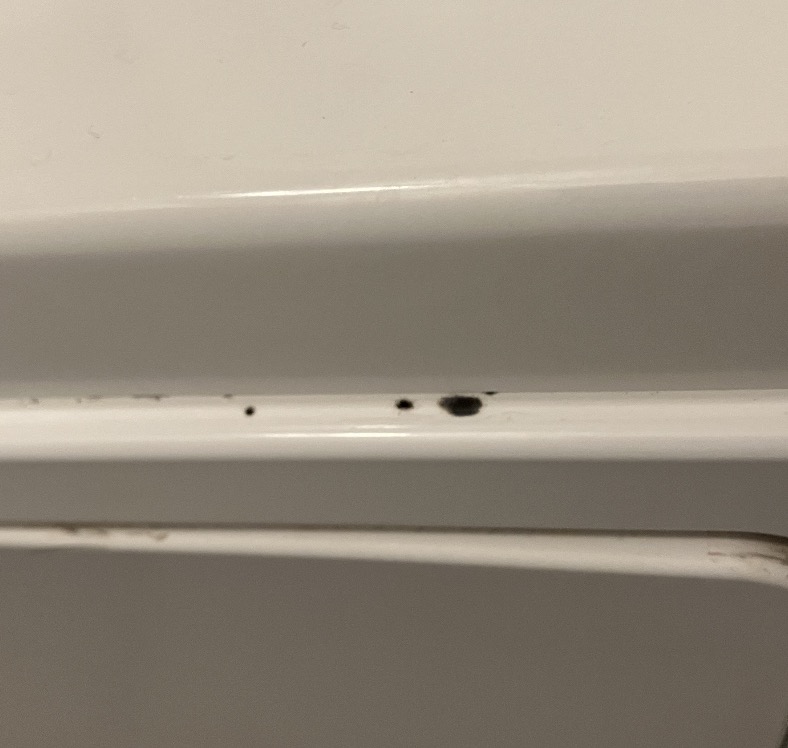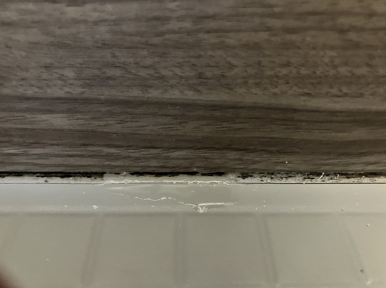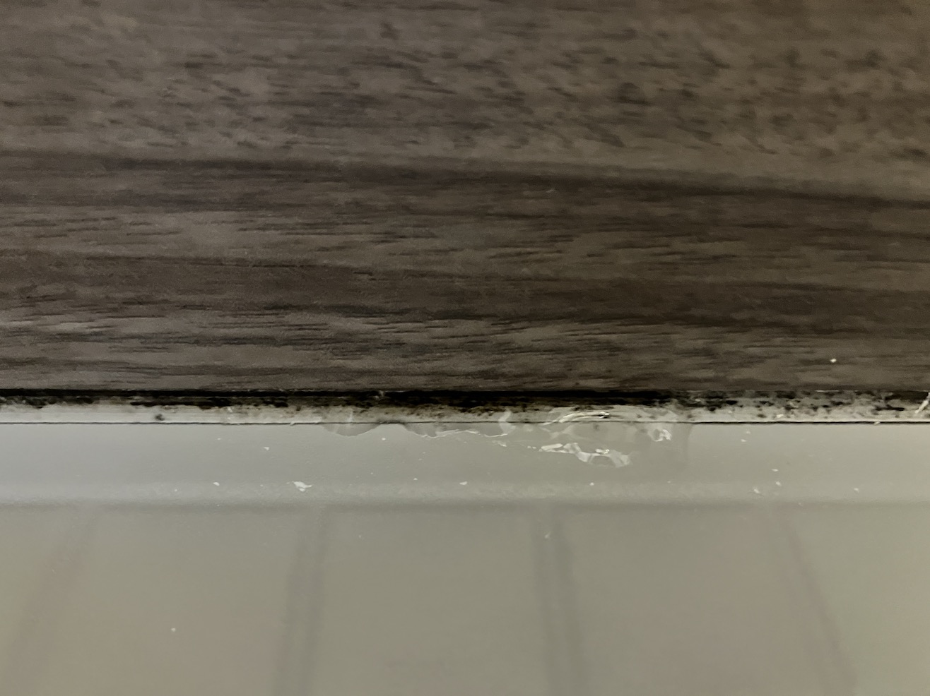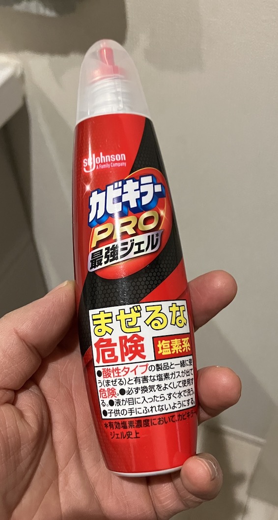 これにカビキラーのジェルタイプのものを塗ります。乾いていた方が良いとのことで、濡れている場合はタオルなどで表面を拭きましょう。
