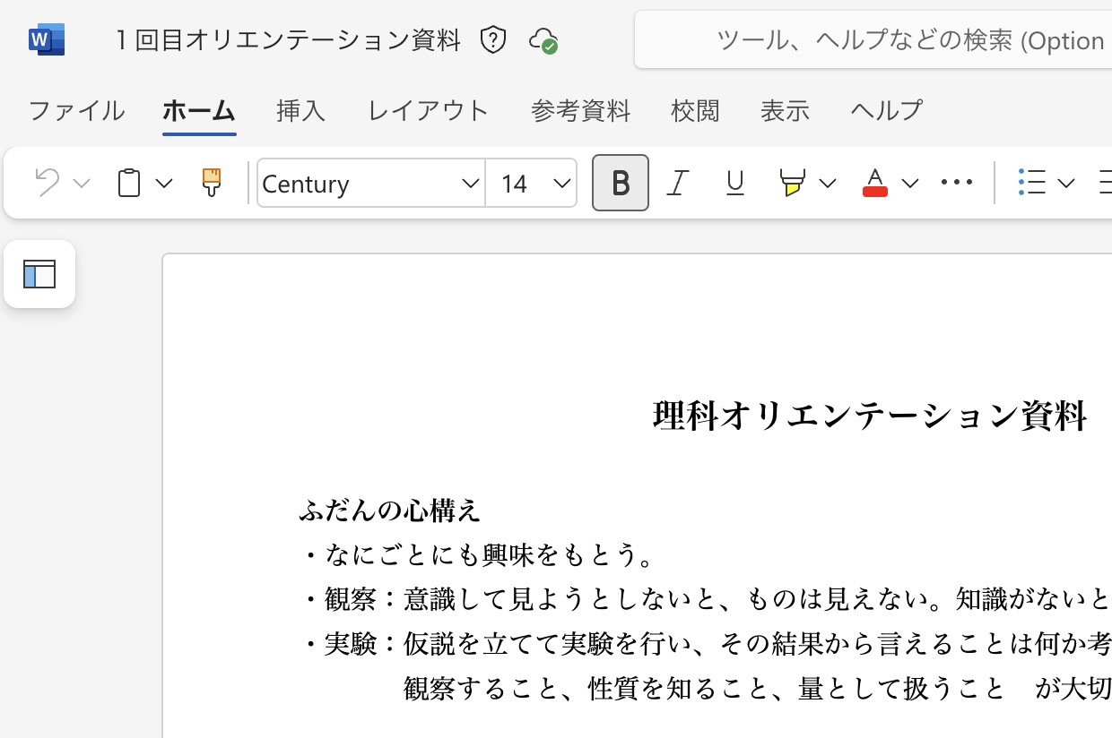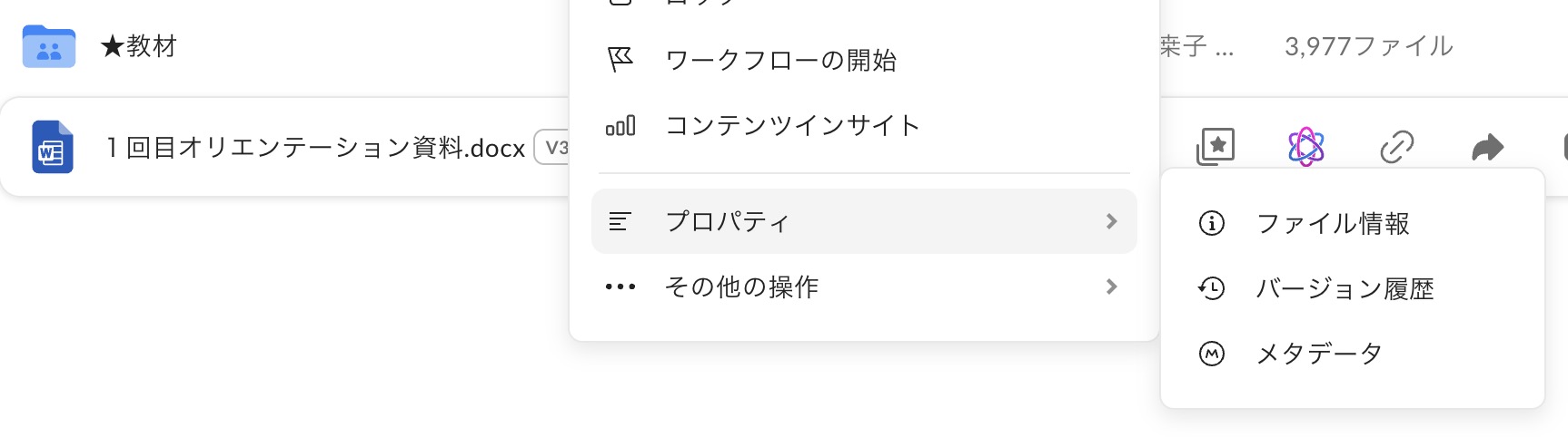 - 画面右側のサイドバーにある「V(数字)」というアイコン(バージョン履歴)をクリックします。