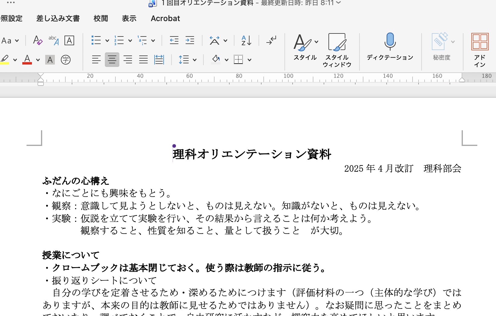 - 修学旅行のしおり(PowerPoint): 各号車担当の先生が、同時進行で自分のページを作成。
