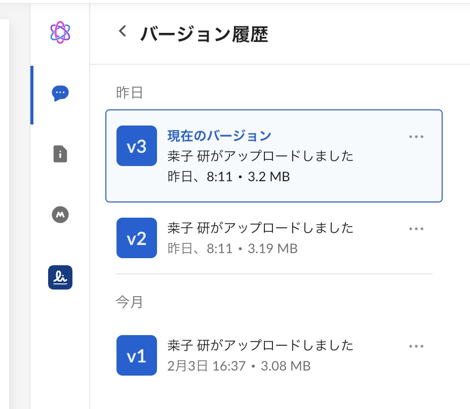 保存するたびに「バージョン」が自動で記録されます。