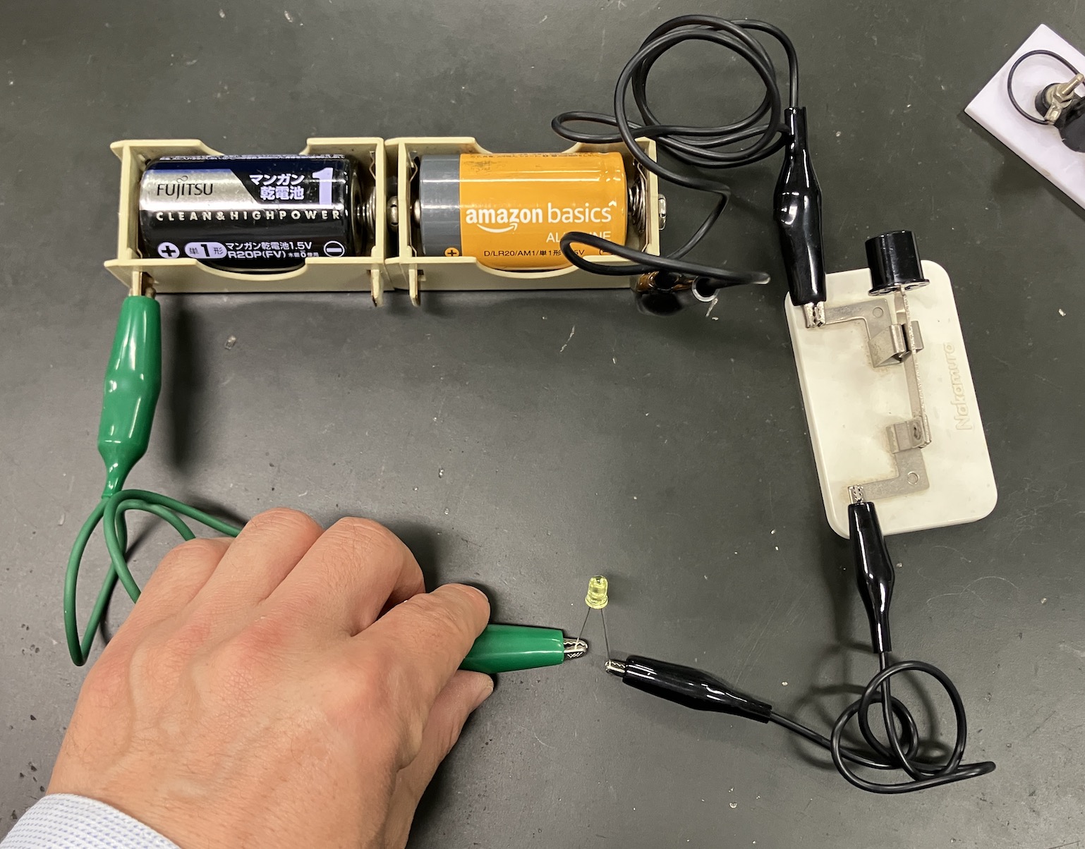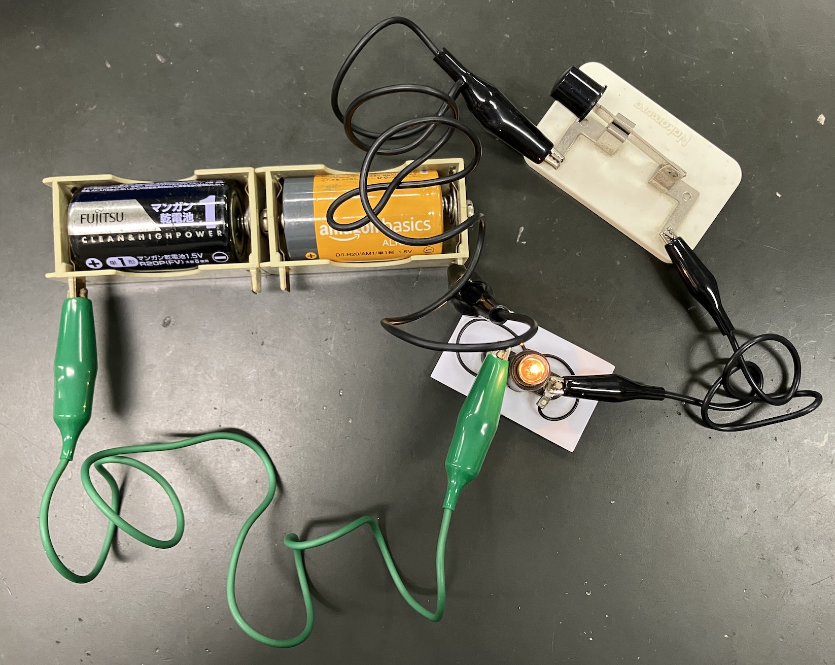 私の授業では、いきなり記号を暗記することはしません。まずは、「鉛筆回路実験セット」(ためす君)を使った驚きの体験からスタートします。