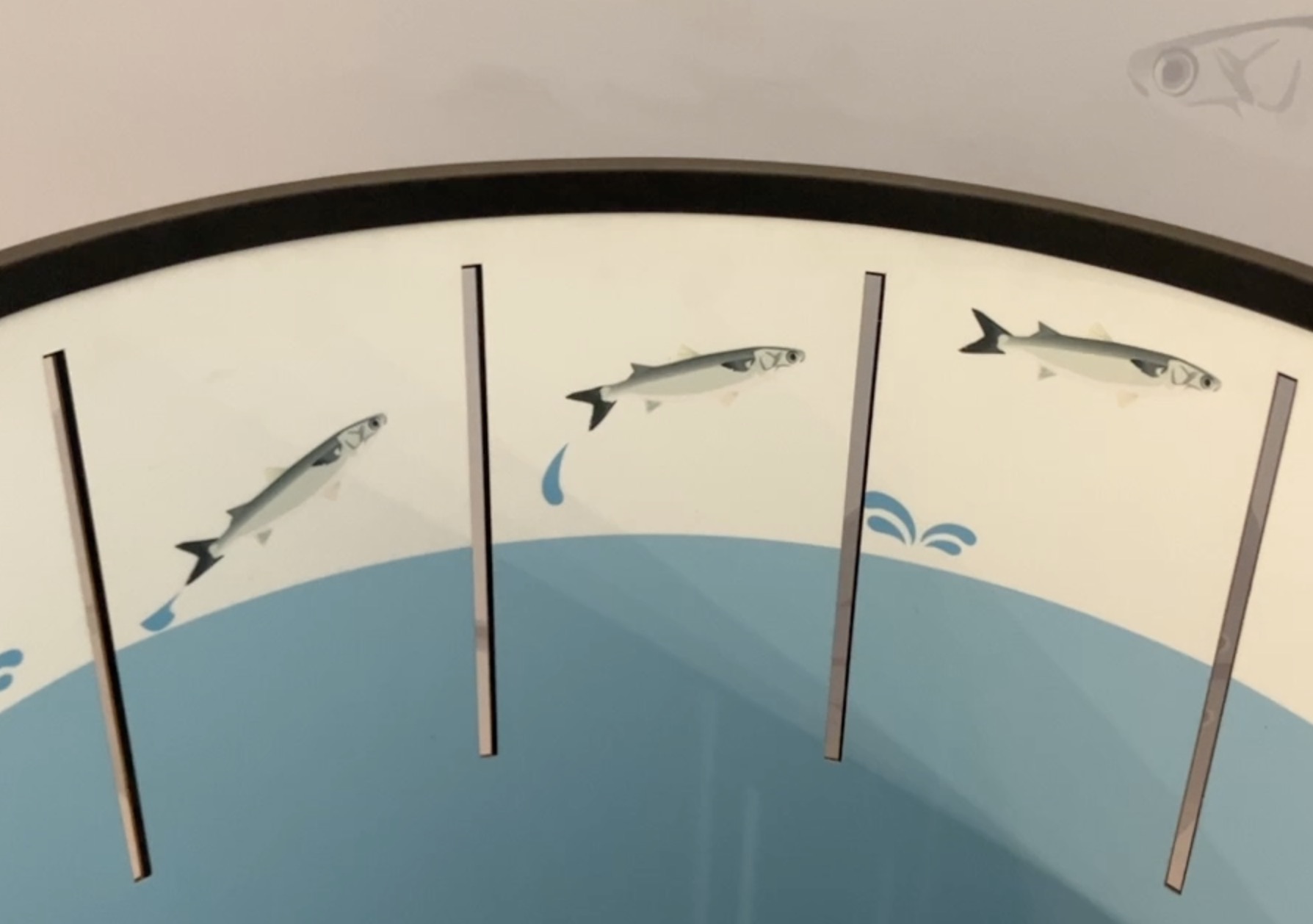 先日、ふなばし三番瀬環境学習館を訪れた際、ある展示物に目が釘付けになりました。それは、円形の容器の内側にトビウオの絵が何枚も描かれ、容器の側面には細長いスリット(隙間)がいくつも開いている装置です。