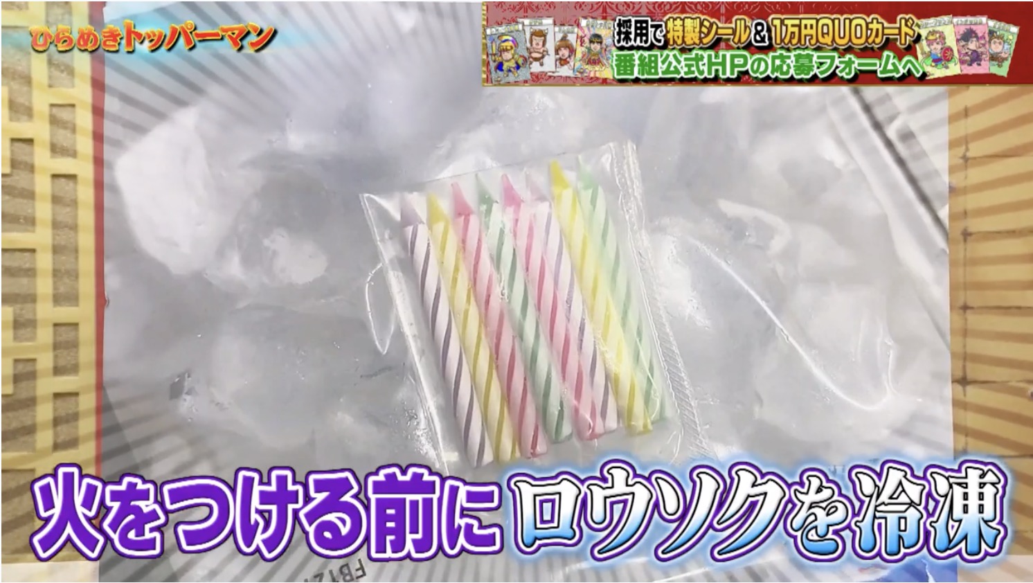 今回のテーマは、ロウソクを冷凍庫に入れると長持ちするというものでした。